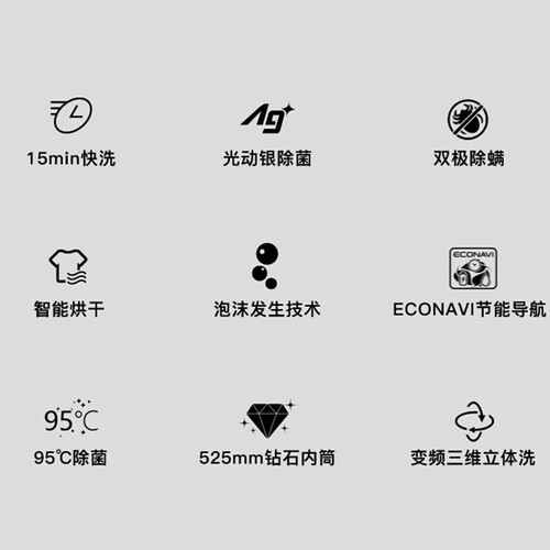 采用抛渔网式脱水技术,使机器更加平稳轻音的工作,衣物脱水更加均匀。双层机门设计,使机器的外形更加有质感。