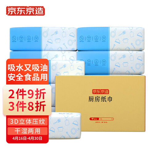 采用抽取式设计,单张取用,不易造成浪费。立体压纹,能够容纳更多水渍的吸入,满足您的使用需求。一纸两用,实用性出色。