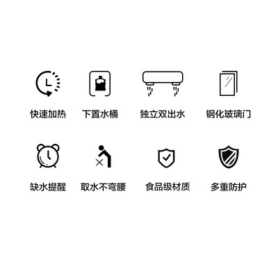 饮水机设计缺水提醒功能,避免干烧,进一步提升安全性。采用快速加热技术,饮用热水无需久等,实现快速升温。