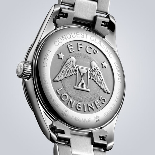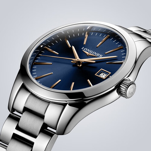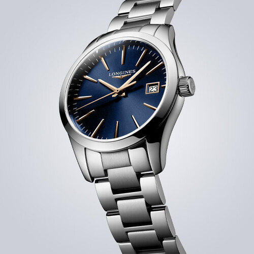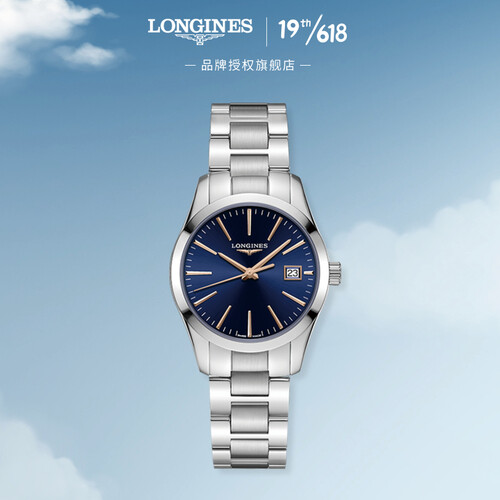 蓝色表盘搭配粉色指针,色彩迷人,优雅出众。精钢表带,坚固耐用,塑造商务OL风范。