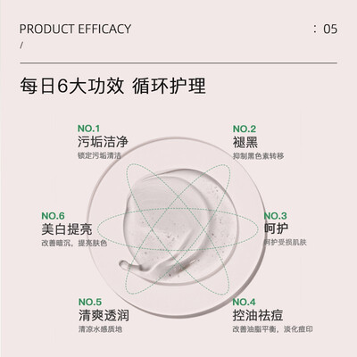 富含烟酰胺成分,可抑制色素转移,美白肤色提升透亮光泽。植物萃取成分,能够调节水油,控制油脂,减少痘痘滋生。