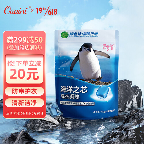 一颗洗衣凝珠能洗10~20件衣服,洁净能力强,省时又环保。添加了柔顺成分,呵护衣物,让衣物更加柔顺亲肤。