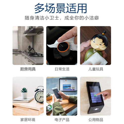 优选水刺无纺布料,运用复杂工艺制成,柔韧性较好,擦拭不易破裂。盒体带有盖子,抽取后可及时盖回,保持湿巾湿润度。
