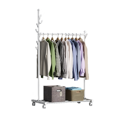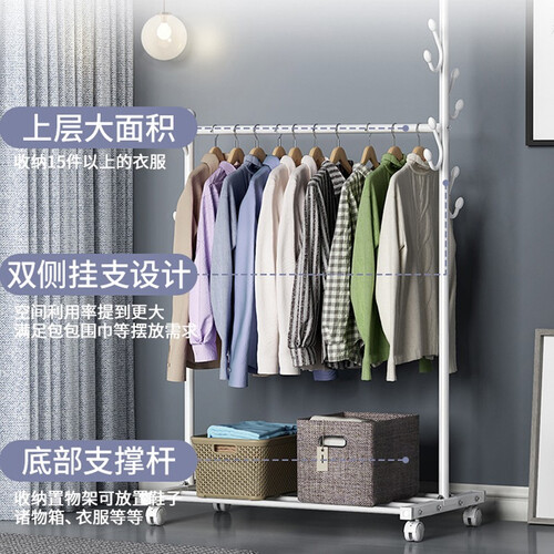采用加厚金属材质,坚固厚实不易变形,经久耐用。搭配万向轮设计,可以随意移动,随时放置在太阳下晾晒衣物。