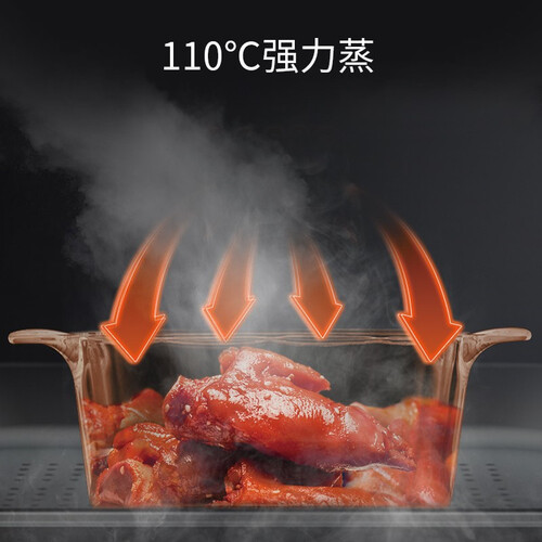 搭载德国技术3D热风烤,食物均匀受热,提升口感。烘烤的过程当中还可以加入全景高温水蒸气,能够形成美味可口的酥皮。