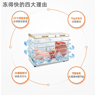 独立双温室,一柜双鲜,果蔬鱼肉各自存放,独立存储不串味。3G螺旋制冷系统,冷冻均匀,双重制冷瞬锁新鲜。