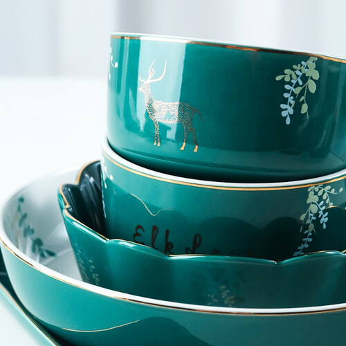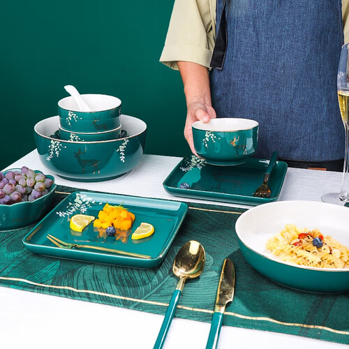 采用轻奢金边设计,外观精致典雅。采用高温烧制强化瓷,家人可放心盛装食物。较低吸水率,水渍不易残留,清洗更干净。