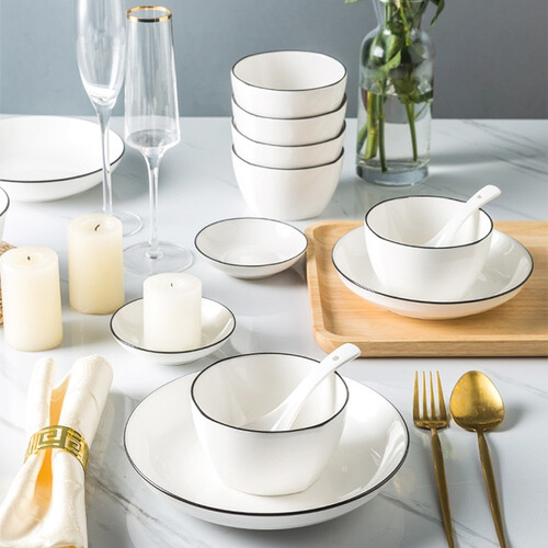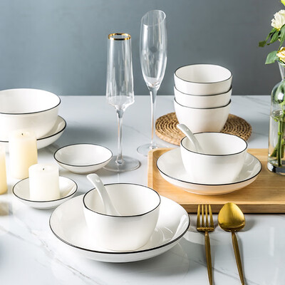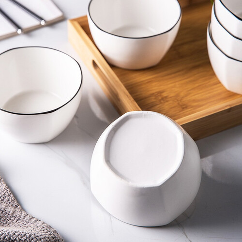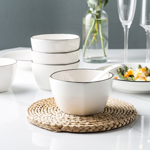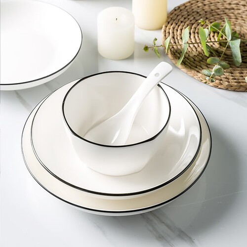 采用安心釉下彩工艺,与食物形成间隔层,无有害重金属解析,安全耐用。同时釉面光滑,利用黑色线条装饰,衬托美食更有食欲。