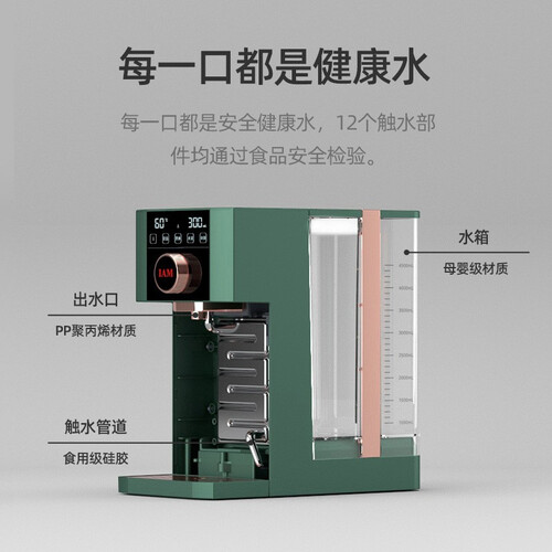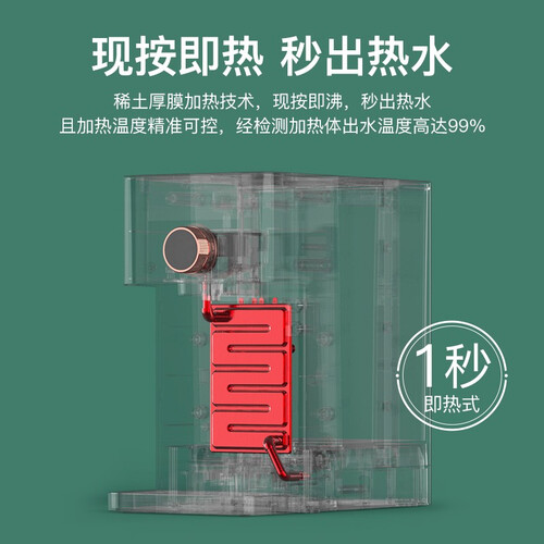 采用稀土厚膜加热技术,加热速度快,秒速出热水,饮水无需久等;食品级选材,环保无毒,健康无异味,饮水更安心。