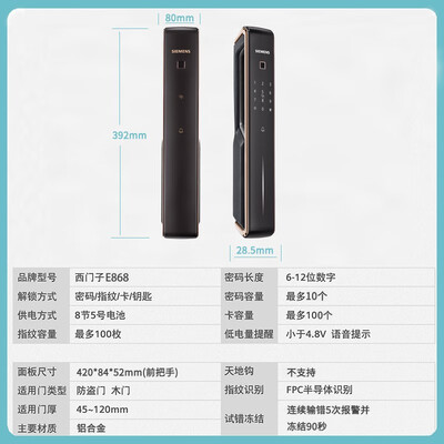 全自动静音锁体,使用时不会产生噪声,开关门更顺滑。半导体指纹头,灵敏度高,可以快速识别指纹,使用无忧。