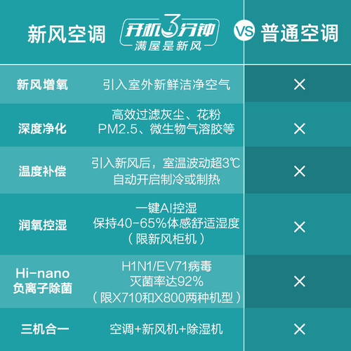 新飞系统母婴级呵护,带来柔顺干净的享受体验,体验一年四季如春的室内气氛。全域净化,六项全能集于一身,快速换新风。