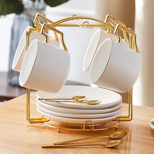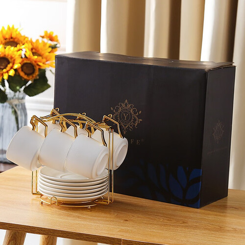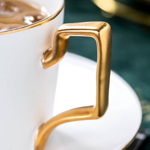 甄选优质陶瓷材料,拥有良好的耐高温性能,冲泡时更加安全。采用手工金环工艺,金色的把手更有质感。