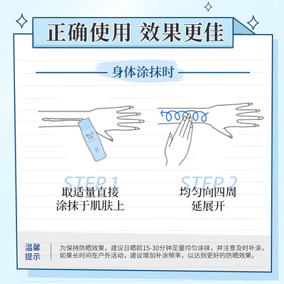 轻薄乳液质地,涂抹无厚重感,易吸收不长脂肪粒。含有滑爽柔粉,质地柔滑无惧汗液冲击,全身防晒轻松搞定。