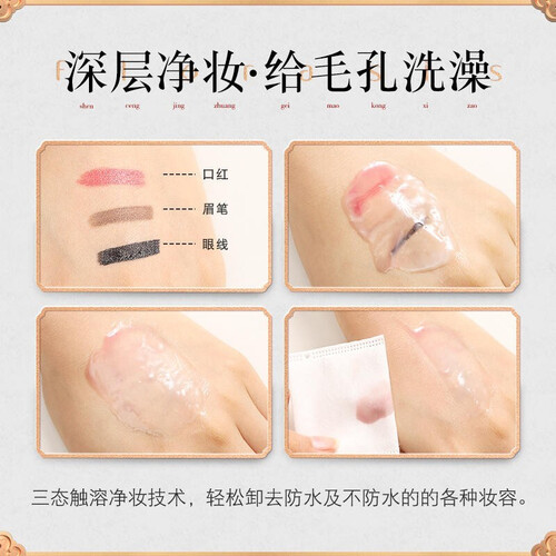 滋润保湿肌肤,去除毛孔残留物,能让彩妆,污垢,油脂快速上浮皮肤表面,温和清爽卸妆,同时锁住水分,提高肌肤弹性。