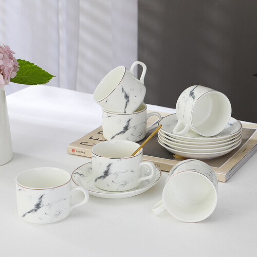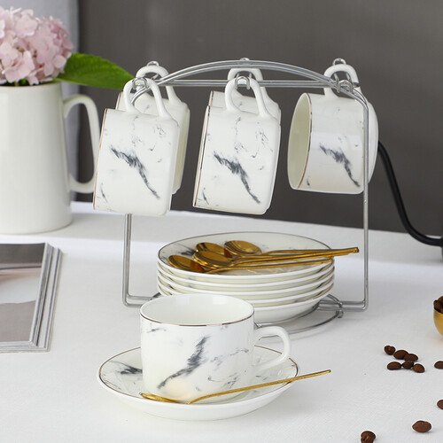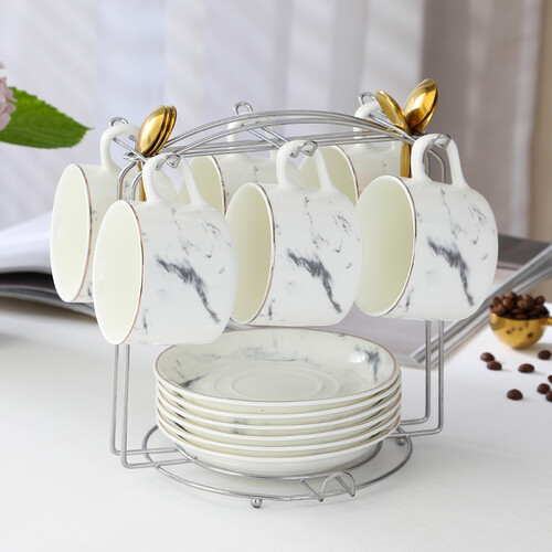 言则 大理石纹咖啡杯套装