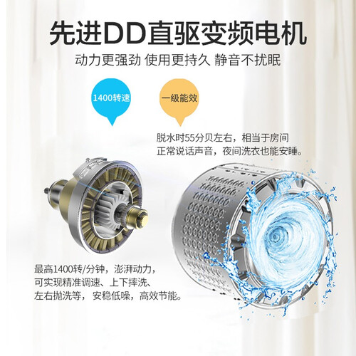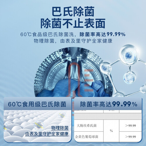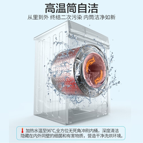 505大直径内筒,衣物放取方便,洗衣更洁净。高温烘干,比太阳去菌率更高,给你阳光般干爽舒适体验。