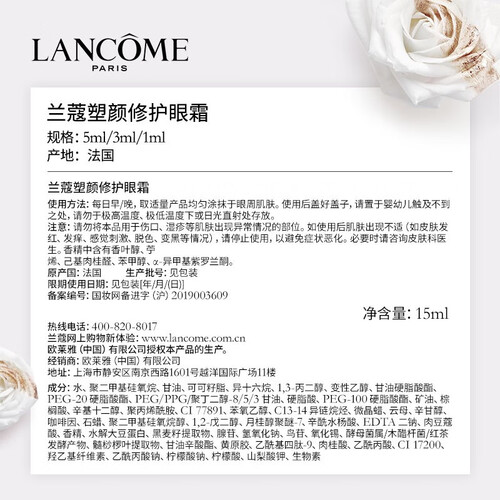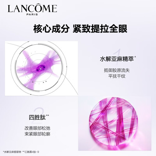 蕴含四胜肽小分子,补充并锁住胶原蛋白,从而紧致焕亮眼部肌肤。
