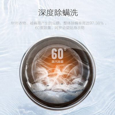 具有一键智能洗,可以自动匹配水量和时间,保证深层去除污渍,让衣物洁净如新;而且还有高温式对冲水流,对筒内进行深层清洁。