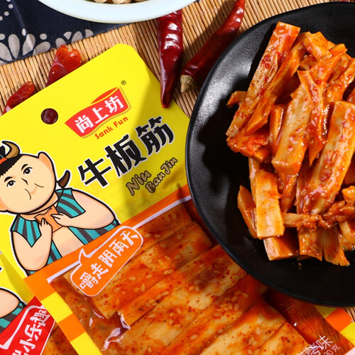 使用十二种香料精心制作而成,辣味与多种香味融合一体,鲜香味美。选用优质牛背大筋制成,更有嚼劲口感更棒。
