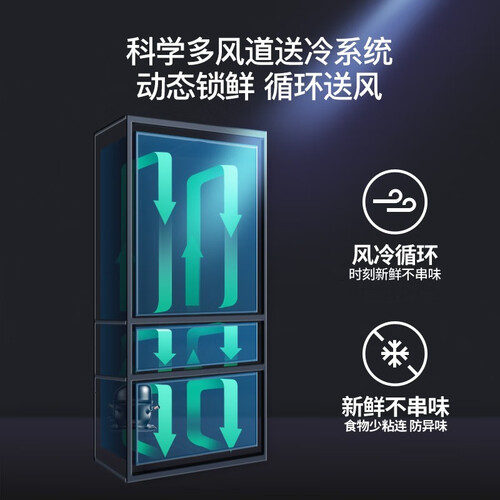 国标一级能效,大大降低功能损耗,可以节约更多能源,性价比高。独立冷风循环,能够起到均匀制冷的效果,防止食物风干。