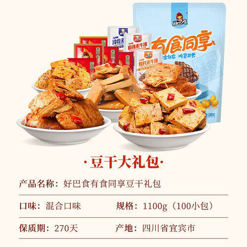 大礼包很丰盛,包含多款豆干品种,加上多种香料搭配卤制,畅享美味盛宴。加班熬夜来一包辣味豆干,香辣过瘾。