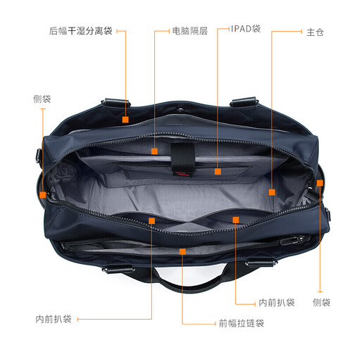 拉链很顺滑,开合顺畅不易卡顿,存放物品更方便。包内空间很宽敞,可装下比较多的物品,满足短途出差需求。