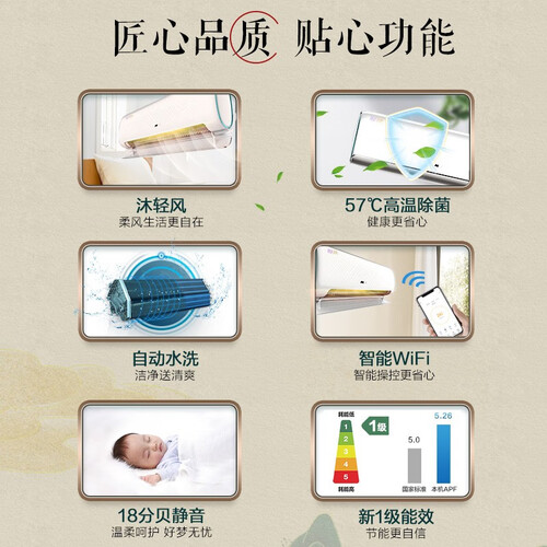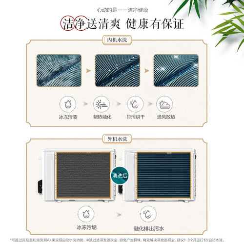 微孔柔风设计,可通过导风板微小孔将风打散,分流降压,出风更细腻轻柔。自主研发高温控制逻辑,自动清洁蒸发器。