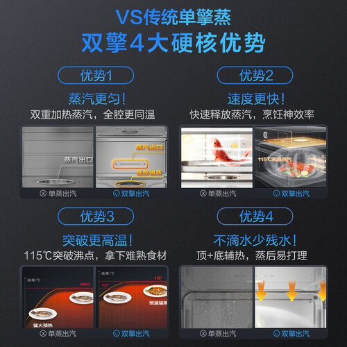 采用三层烤层设计,可满足3-8人的胃口。配备32道智能菜单,让您烹饪更加省心。双擎大蒸汽系统,让食物更加美味。