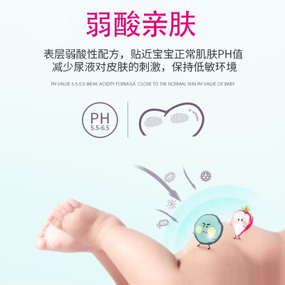 弱酸性表层,与肌肤PH值相接近,亲和不易致敏;3D葡萄状面层,尿液能快速被吸收、导流,避免尿液长时间接触臀肌产生刺激感。