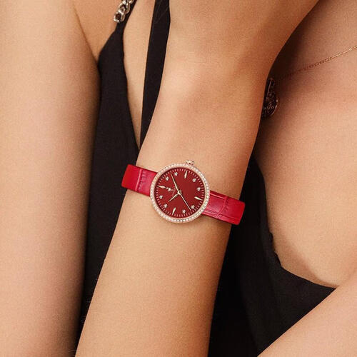 68颗钻石,持续释放璀璨光泽,赋予视觉更多的美感。头层牛皮表带,色泽亮丽细腻,更合你的品位,衬托手腕更白皙。