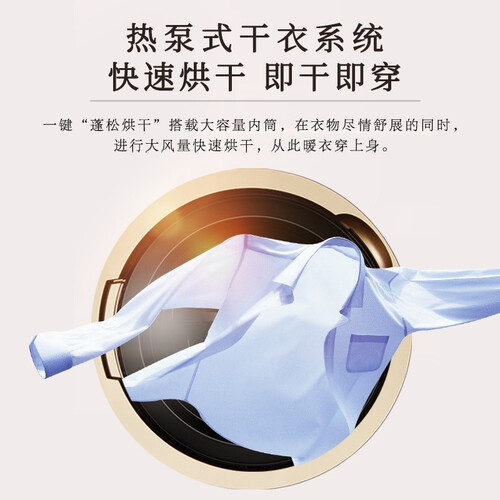 拥有热泵干衣系统,低温烘干,还原蓬松质感,穿着更舒适。采用纳米级精洗,无惧衣物上的顽固污渍,深层洁净无残留。
