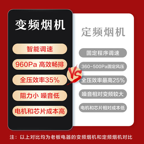 搭载智慧变频技术,不仅可以确保油烟机工作稳定,而且还能节能省电,还采用大风压设计,确保排烟顺畅无阻。