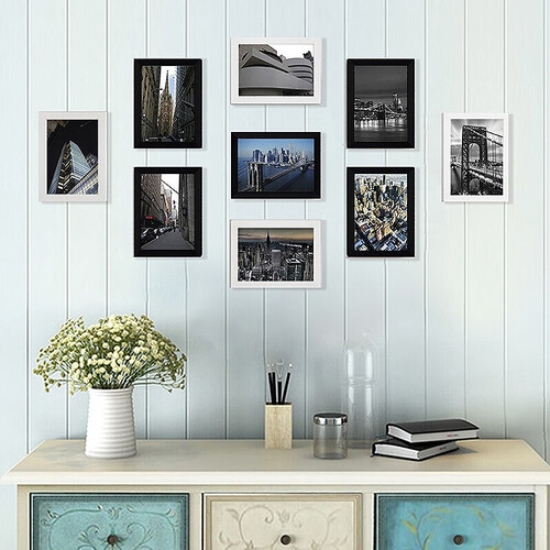 相框切角拼接整齐,消除了尖锐的棱角,不易割伤使用安全性更高;配赠无痕钉,能避免损坏墙面,安装更省心。