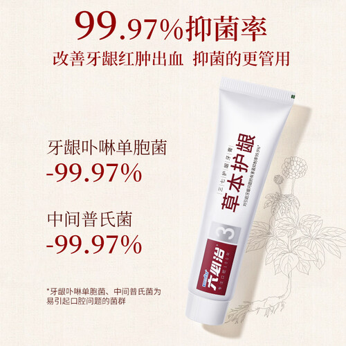 这款牙膏特含三七、薄荷、野菊花等多重植物成分,可以舒缓修护,调理口腔不良状态。且成分天然安全,更加温和。