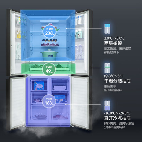 配备高清LED触摸屏,轻松操控,精准显示储鲜数据;典雅灰配色,精致大气,百搭各式居家格调。