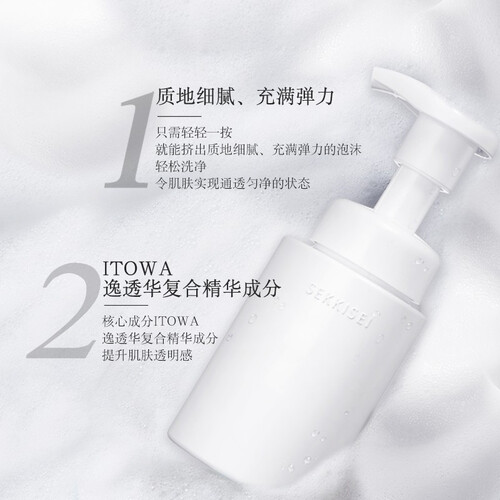 质地细腻,只需轻轻一按,就可以挤出充满弹力的泡沫,可以使肌肤通透匀净;含有植萃成分,成分温和不刺激。