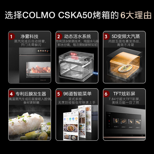 采用气流净雾科技,蒸制后自主排雾,防止开门时蒸汽烫伤肌肤。具有7.84英寸彩色触摸屏,功能尽收眼底,轻松即可上手使用。
