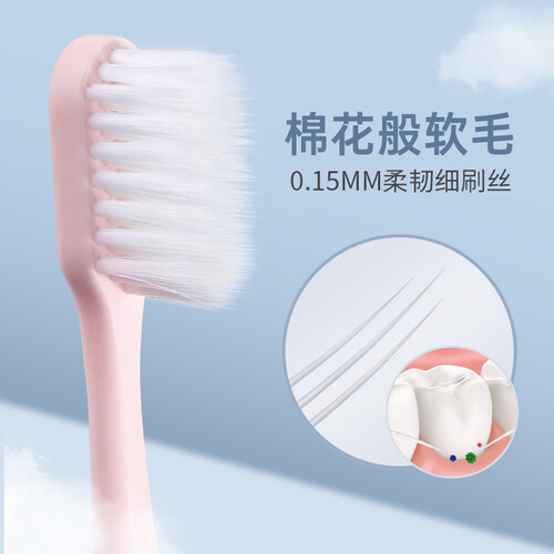 直径仅有0.12MM的柔韧刷丝,刷牙时犹如口含棉花一般柔软。交错条纹手柄,增加摩擦力,防滑不脱落,抓握更稳固。