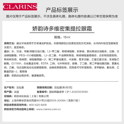 娇韵诗提拉紧致补水保湿眼霜