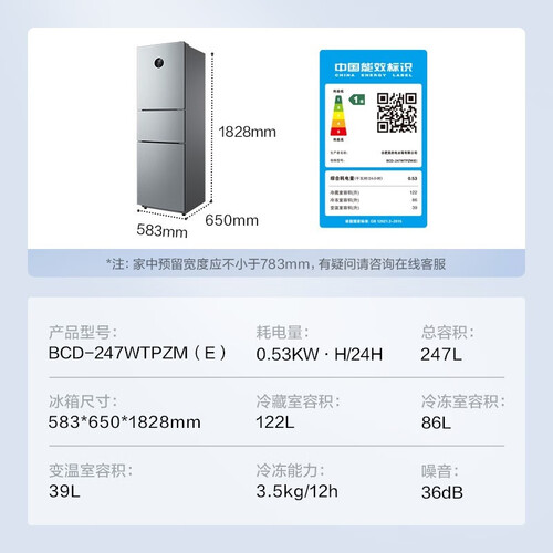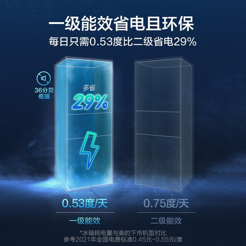 采用变频电机精准控冷,温度波动小,除了更加节能低噪以外,也能有效延长食物的保鲜期限。符合一级能效标准,2天只要约1度电。
