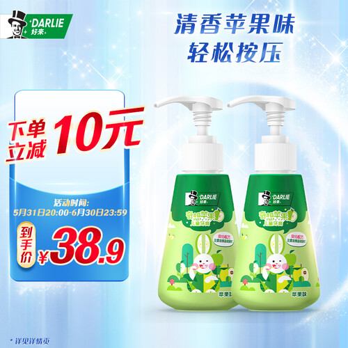 液体质地,粘稠度较低,刷牙时快速溶解,渗透口腔角落深入清洁,有效防蛀。还是宝宝喜欢的清甜苹果口味,让宝宝主动爱上刷牙。