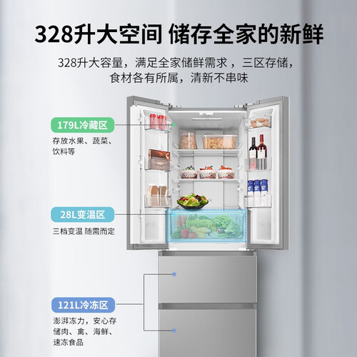 采用四开门三温区设计,能分类放置食材,空间较大能满足家人储鲜需求。采用智慧电脑控温,能实现0.1℃精准控温使温度更适宜。