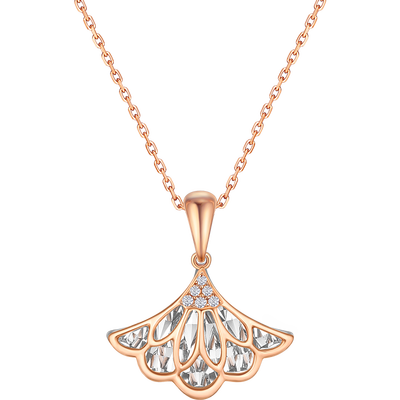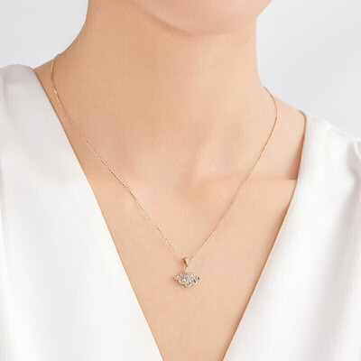 钻石吊坠采用小裙子的造型设计,精致美观,如同天边绽放的美妙烟花,散发璀璨迷人光芒,佩戴更具女性韵味。