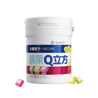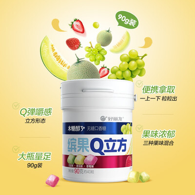 不含蔗糖的口香糖,添加木糖醇调整甜度,具有草莓、香瓜和青提三种口味。开会走神或熬夜打游戏时嚼两粒,提神清口气。
