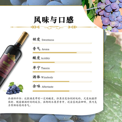 选用玛瑟兰原料酿制葡萄酒,酒精度数低适宜多数人饮用。酒液呈深宝石红色,具有纯正的浆果气息口感更佳。
