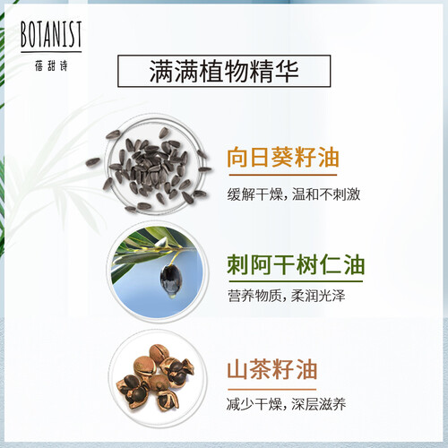富含维生素和脂肪酸,更易被毛发吸收,深层滋养发丝令秀发水润有光泽。多重植物精华,质地温和不刺激,抚平毛躁更柔顺。