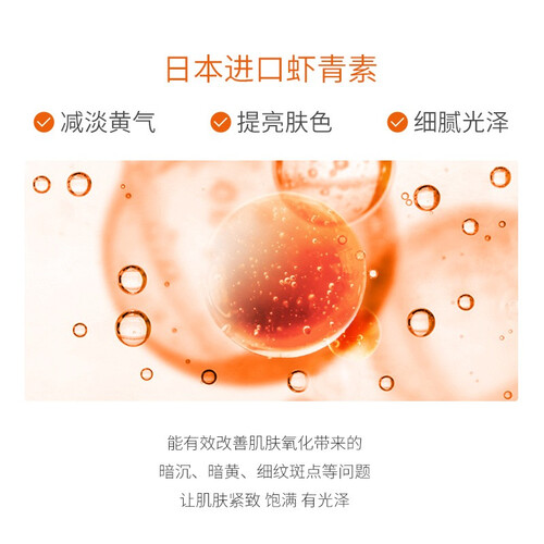 蕴含丰富的虾青素成分,能够延缓衰老,加强肌肤新陈代谢。还能够改善肌肤粗糙暗沉等现象,让肌肤从里往外透亮嫩白。