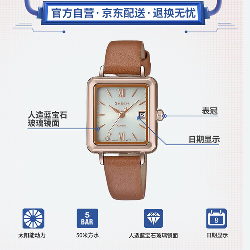 智能的太阳电能功能,不用频繁换电池。纤细的表带装饰,衬托出更修长的腕部。方形的表盘设计,尽显优雅的魅力。