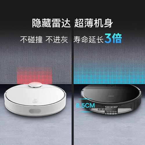 支持翻越屏障,2cm的高度也能轻松翻越,可放心使用。配备520ml的大水箱,能够满足大房间清扫需求,无需频繁加水。