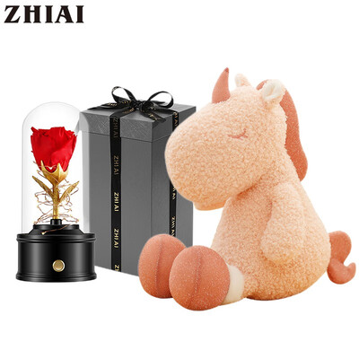 本品选用进口玫瑰花材,纯手工制作,用透亮玻璃罩展现永恒的美。独角兽玩偶手感柔软,萌趣可爱,小夜灯点缀,浪漫唯美。
